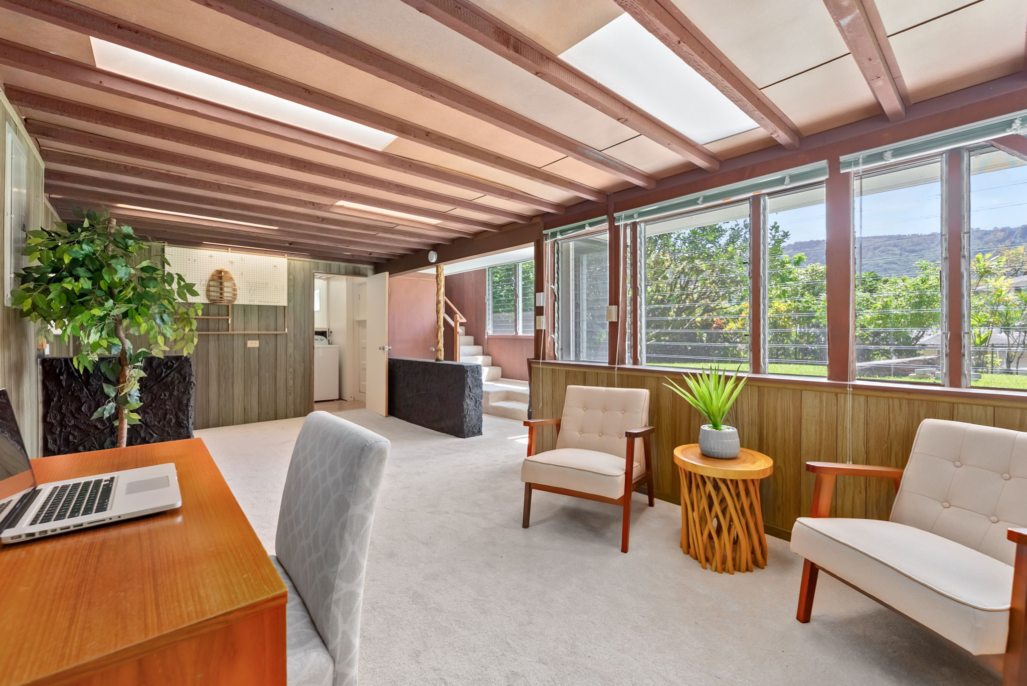 The finished lower level provides flexible space for a den, guests, extended family, or a home office with a separate entry. Recent improvements include electrical and plumbing upgraded in 2026, fresh interior and exterior paint, and brand-new carpeting, making this home move-in ready while still preserving its classic Manoa charm. A true sanctuary in one of Honolulu’s most beloved neighborhoods, this property offers the perfect combination of indoor comfort and outdoor living.