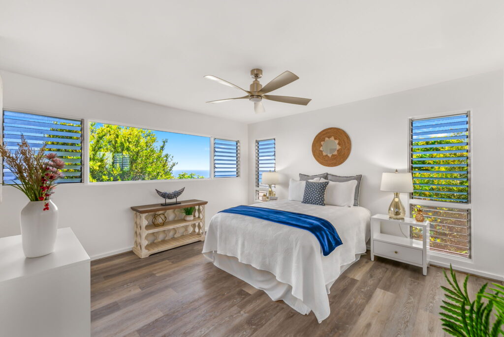 The expansive living areas flow seamlessly to a lanai, perfect for enjoying stunning sunsets and sweeping ocean vistas. Residents also enjoy access to the Waialae Ridgeline Estates Recreation Center, adding to the lifestyle appeal of this exceptional home. Don’t miss this rare opportunity to own a tranquil retreat with unmatched views and timeless charm.