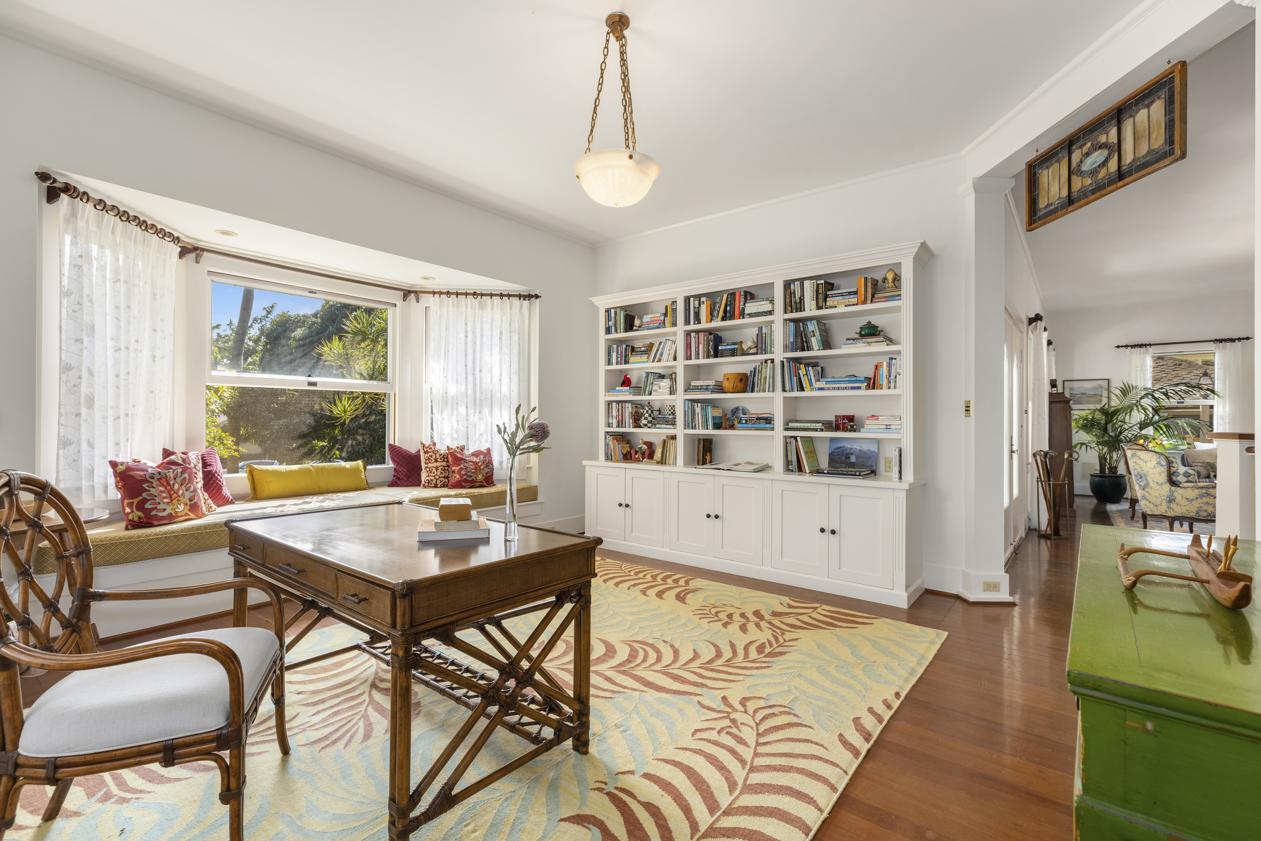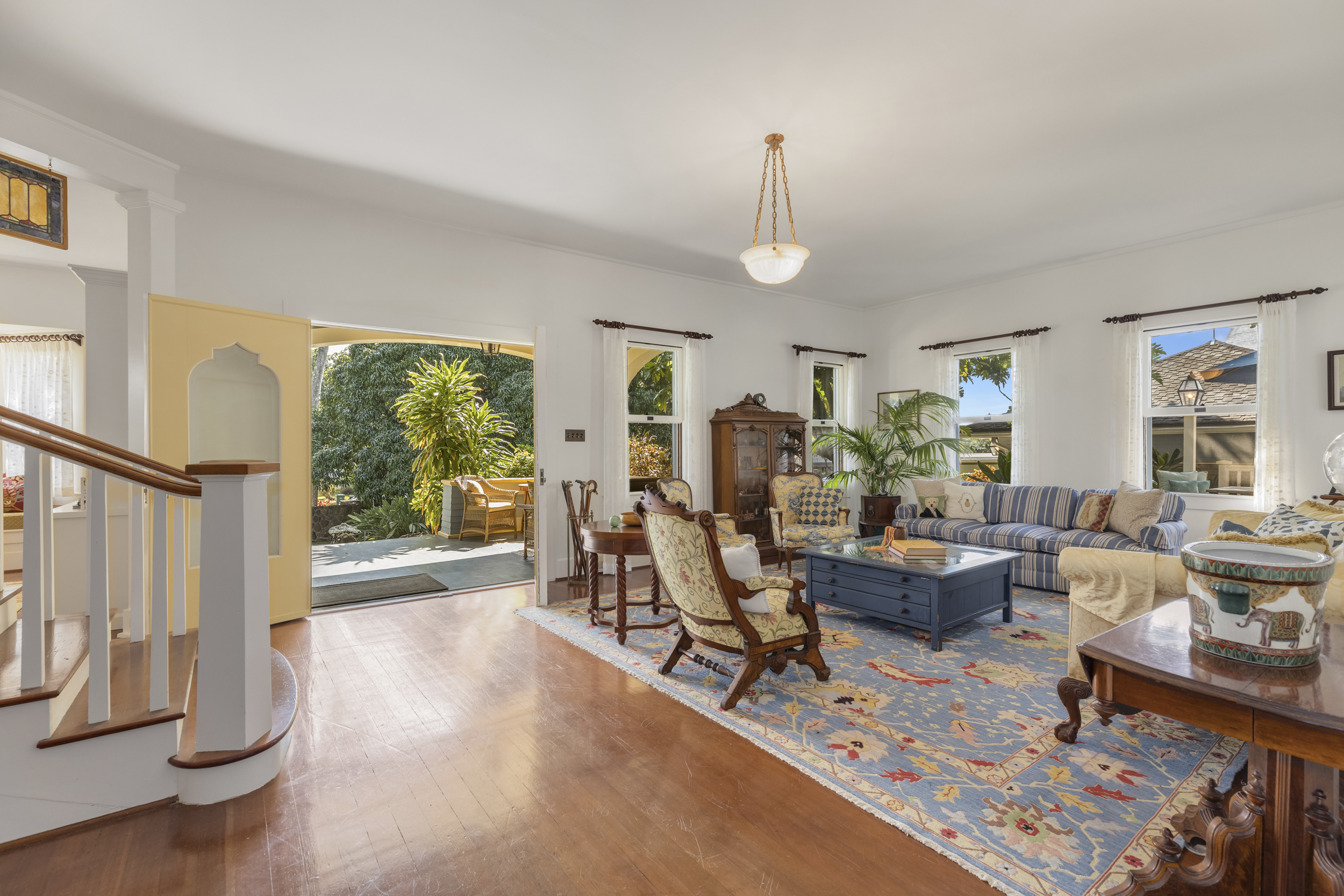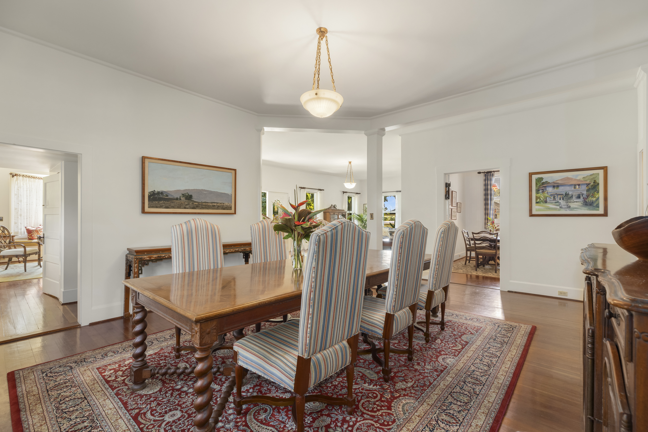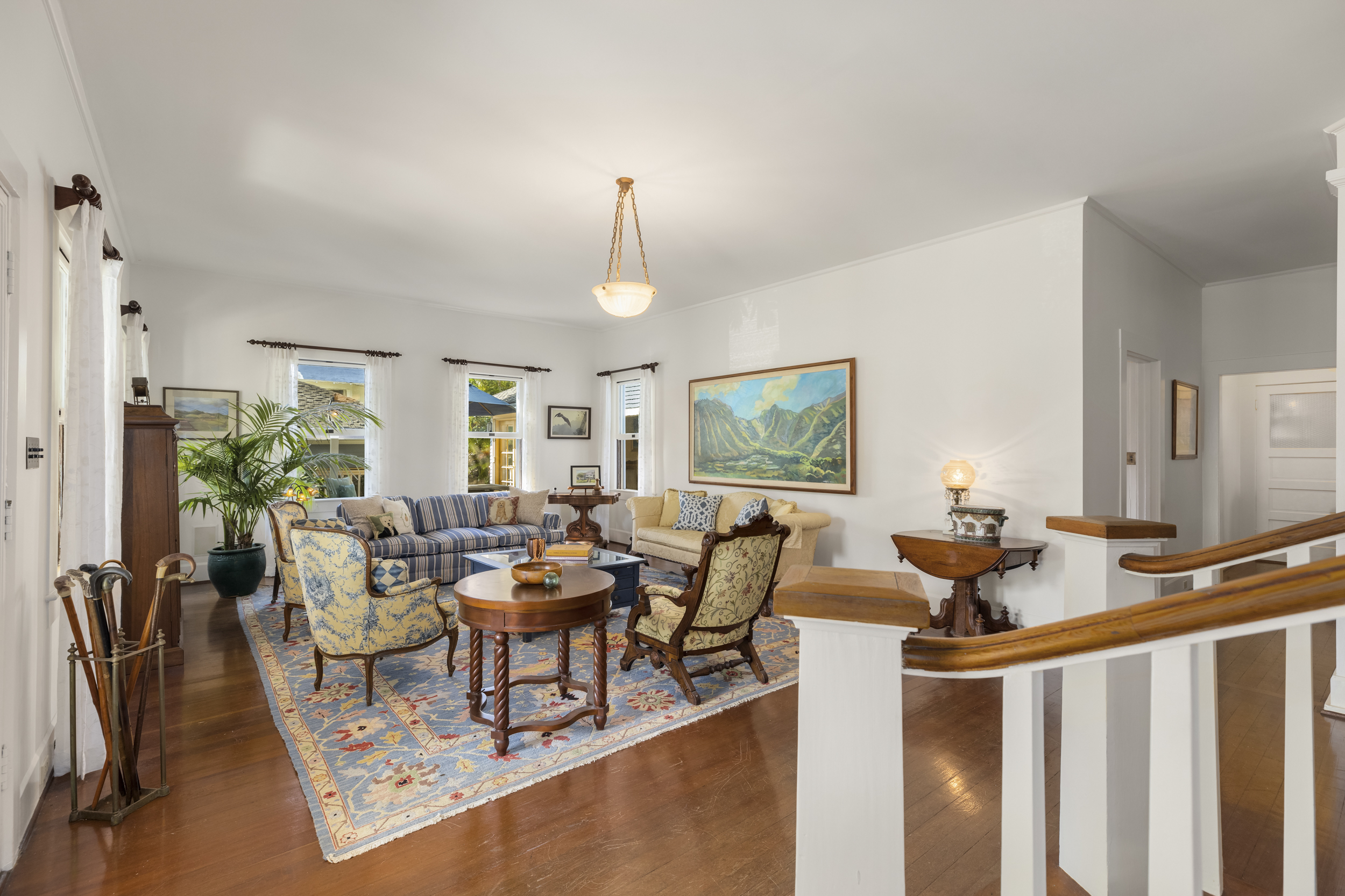 Rarely available elegant and historic kamaaina estate on a 1/3+ acre level lot in Manoa. Set behind a front gate framed by 3 royal palms, it is surrounded by mature vegetation. Double doors with beveled antique glass open to multiple living areas and an award-winning traditional English, Studio Becker kitchen and informal dining area. The property grounds are great for entertaining on the large deck off the family room or the covered entry arched porch. Special features throughout this spacious home include 10ft ceilings, custom fabric drapes, fir wood floors, double hung windows, wood shutters, and original light fixtures from 1910. Each room in this grand and classic home is extra spacious; with the finished basement/in-laws’ quarters there is a multitude of possibilities in this estate that is extensively remodeled and listed on the historic registry.