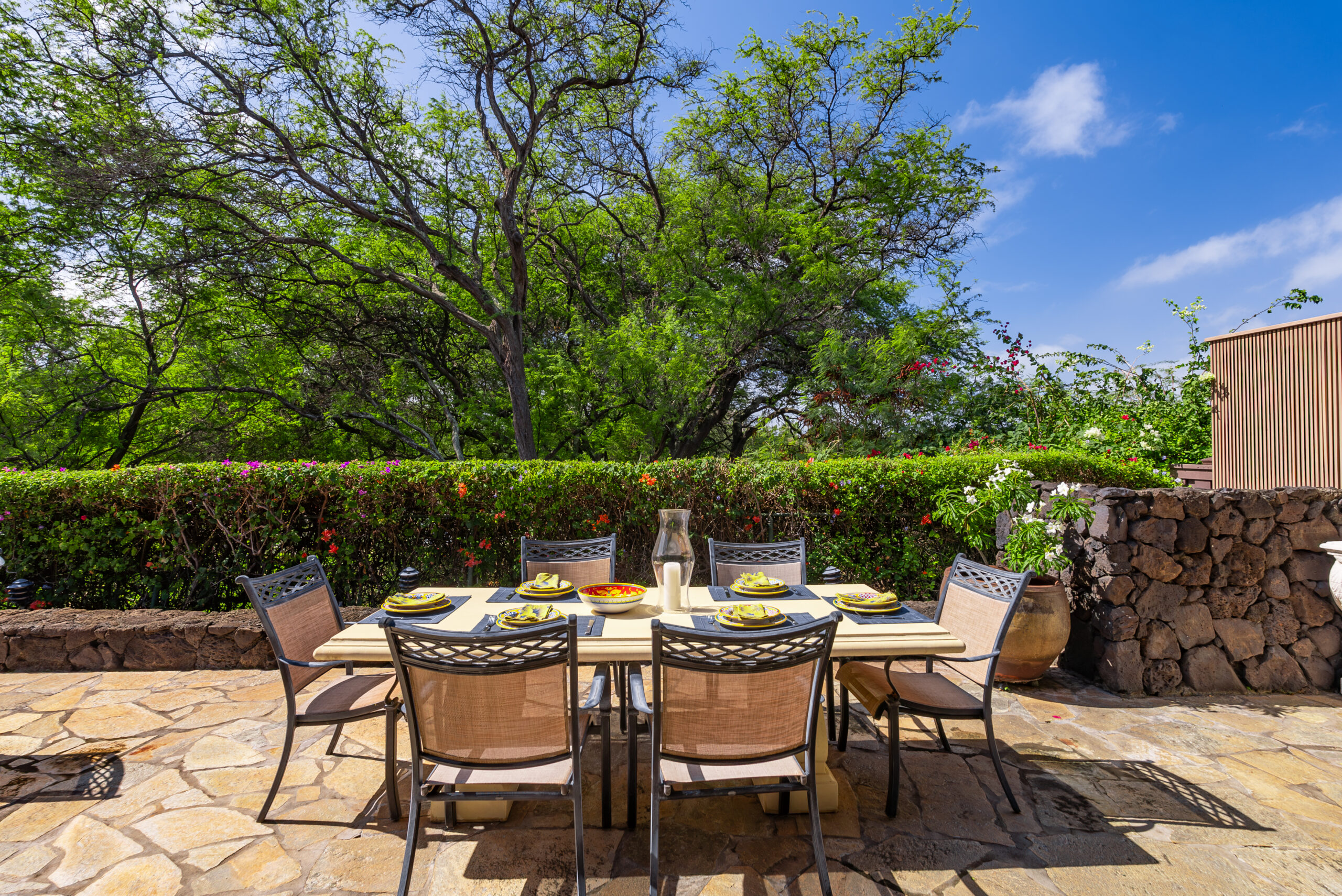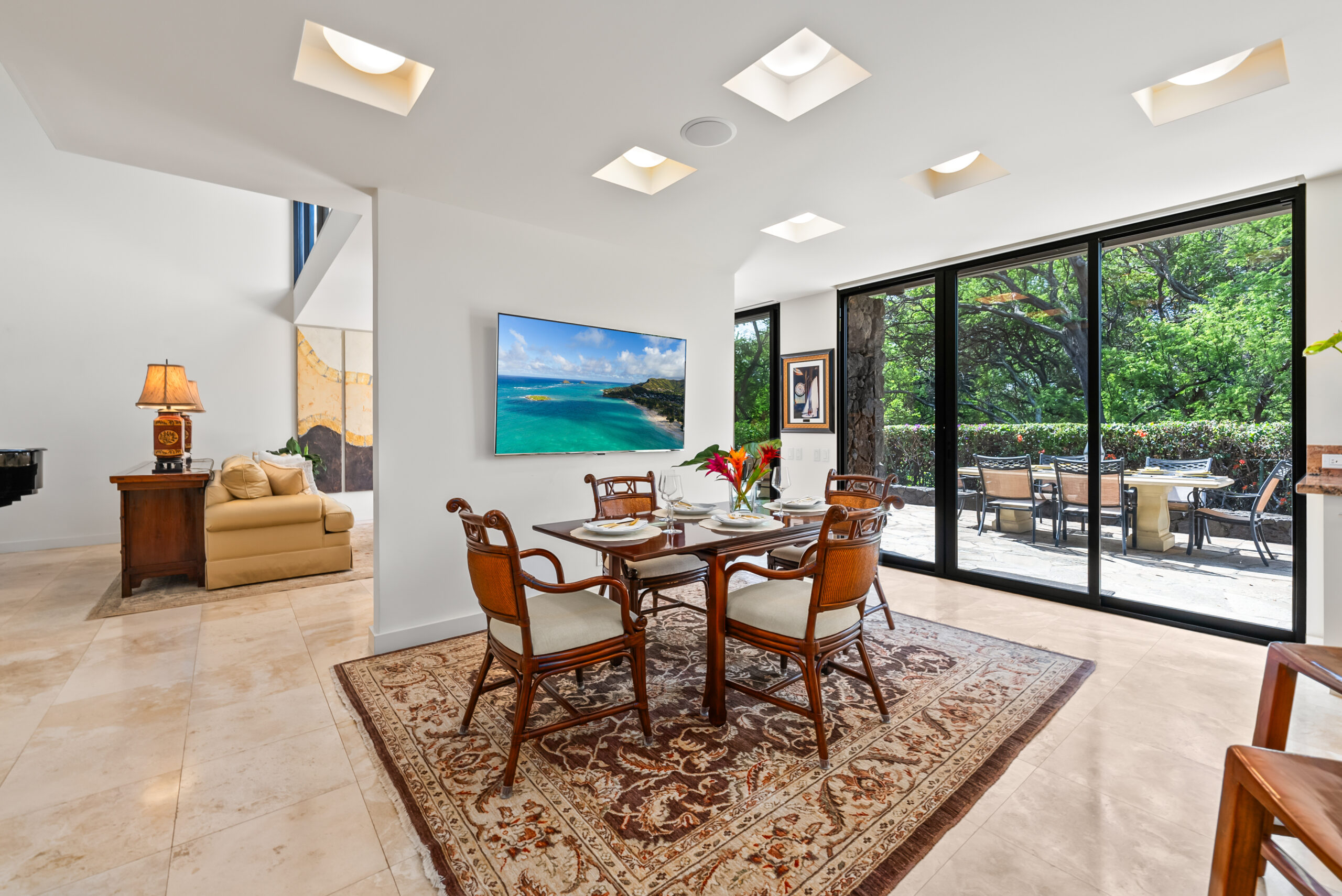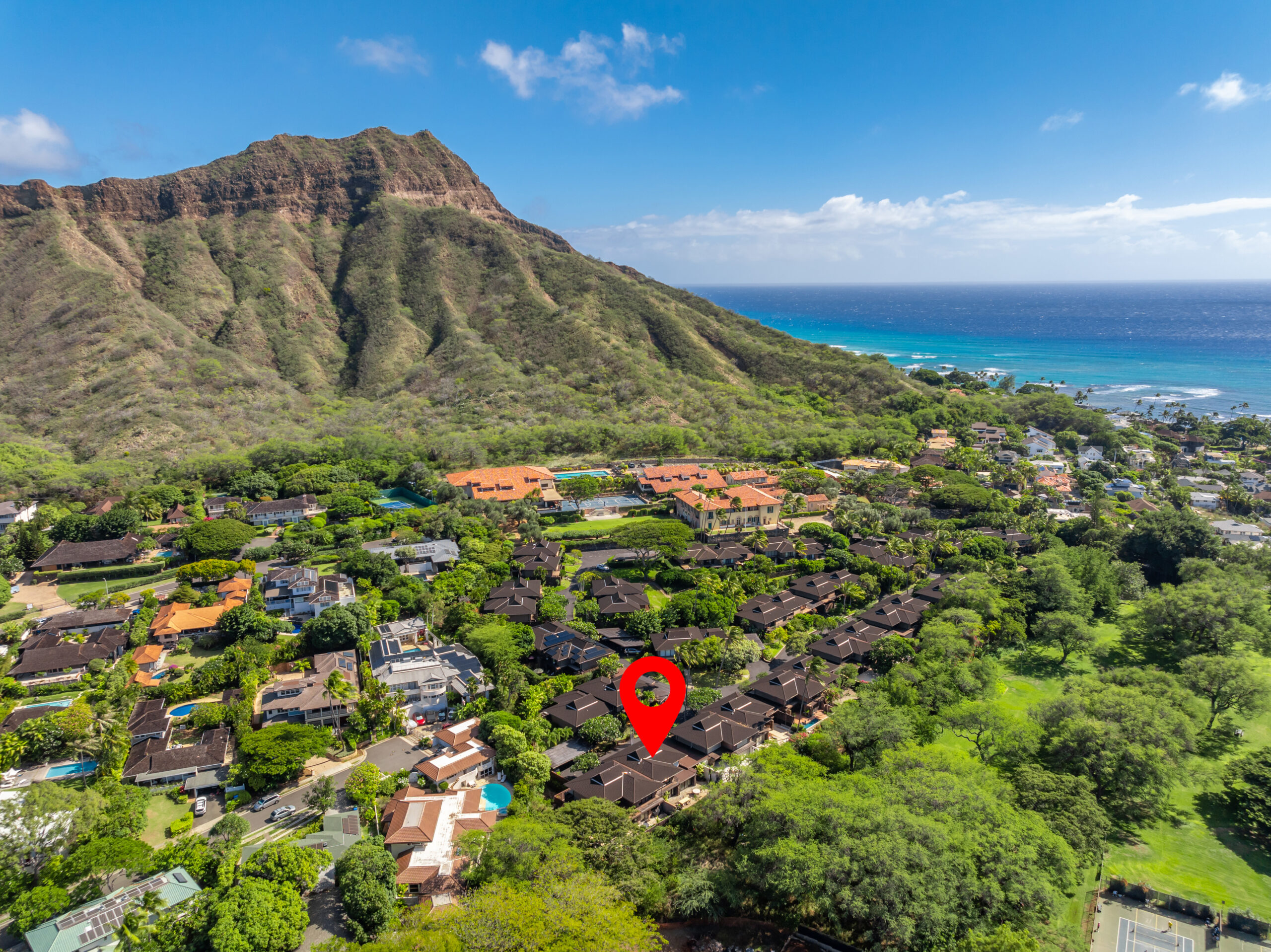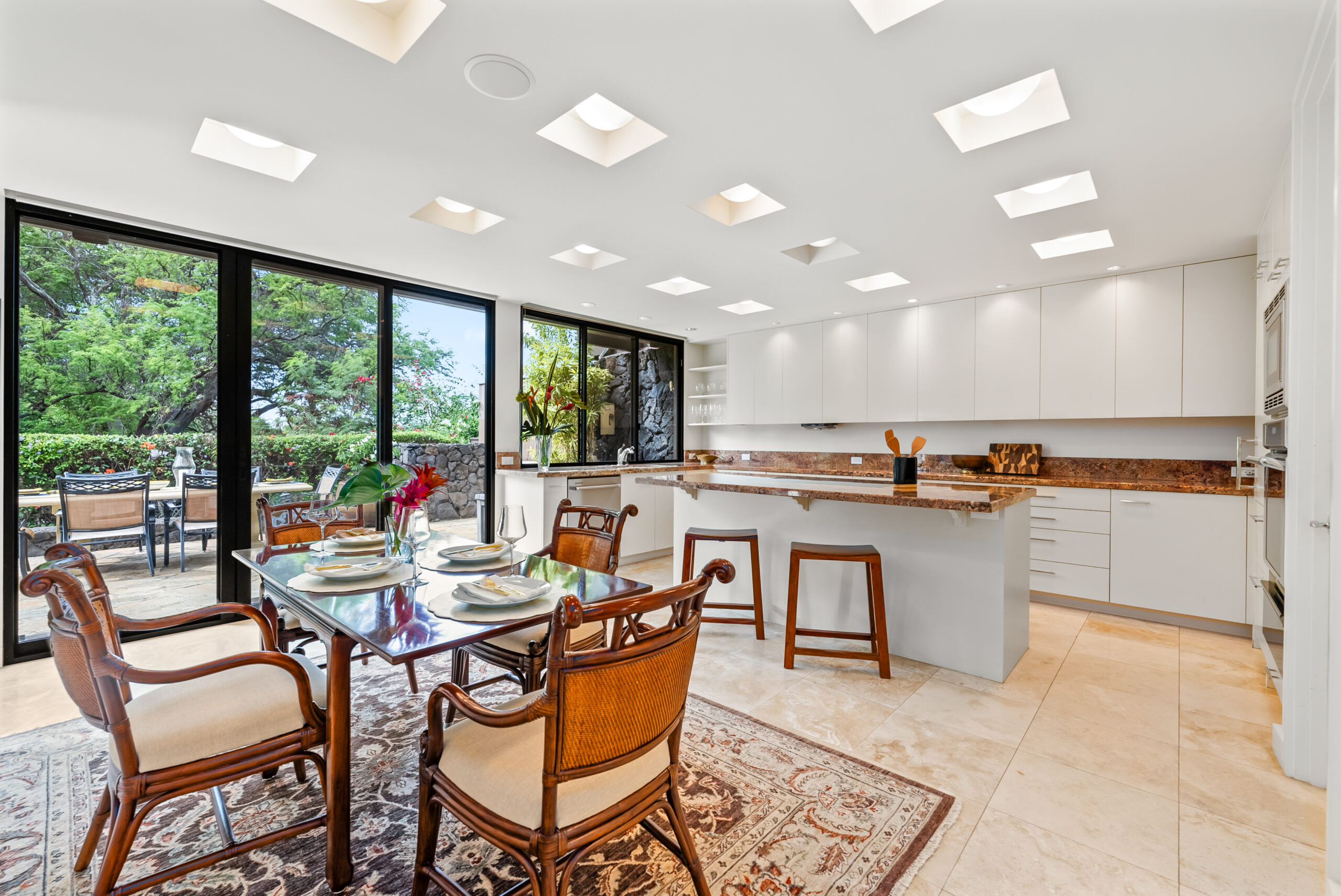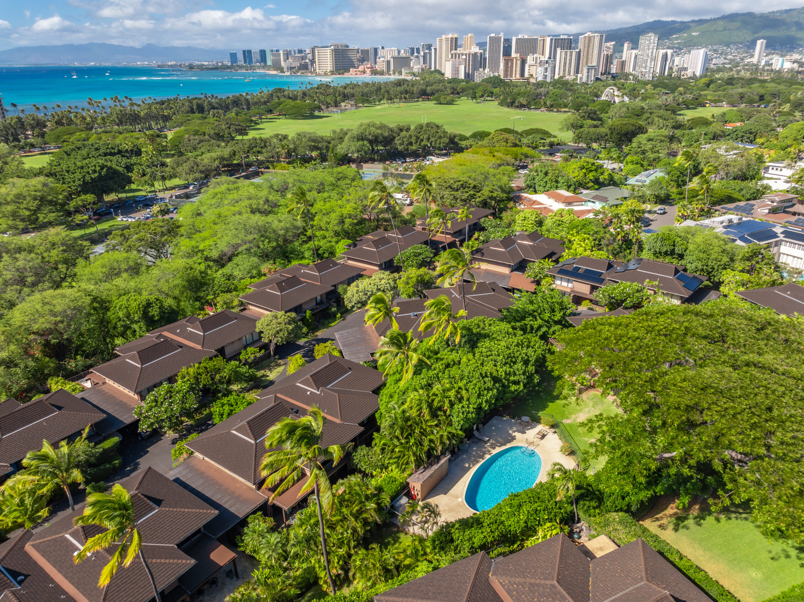 Tucked away in the prestigious La Pietra community at the base of Diamond Head, this fully renovated 3-bedroom, 3.5-bath townhome offers a harmonious blend of elegance, privacy, and convenience. Situated in a prime, private and perimeter corner of the complex overlooking Kapiolani Park, this residence features an expansive open floor plan with over 3,000 sq. ft. of luxurious indoor-outdoor living.