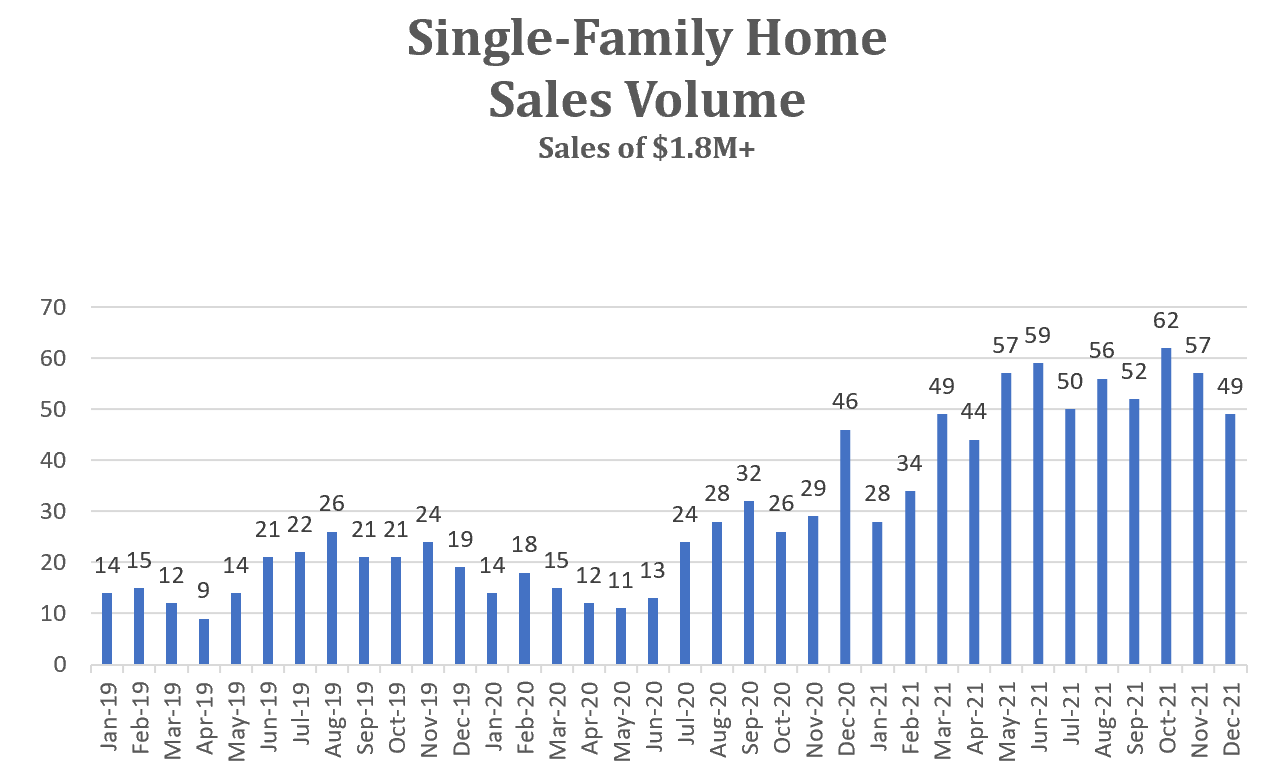 $2,550,000 Median Price, down 13.8% – in 2021, 19 condos sold below $2M but 0 in 2020