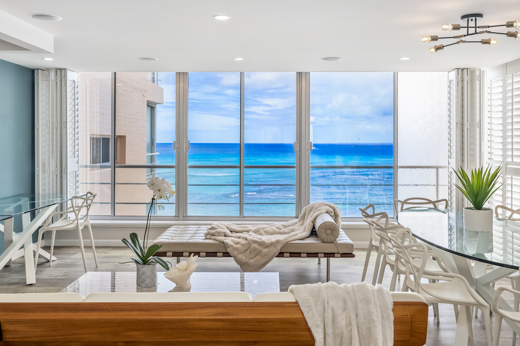 Welcome to this designer one-bedroom luxury unit, perfectly positioned on the oceanfront, offering unparalleled views & a sophisticated lifestyle. This incredible residence is a masterpiece of modern design, showcasing designer furniture, custom upgrades & high-end finishes throughout including luxury vinyl flooring & plantation shutters. Upon entering, you’re greeted by an open-concept living space that seamlessly blends style & comfort. The interior is tastefully adorned with a curated selection of designer furniture, making every moment feel like a retreat in an upscale art gallery.